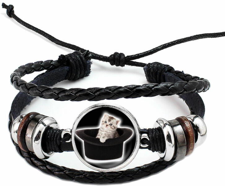 Ez az egyedi dizájn csak nálunk kapható. Tartós, egyedi, kézzel készült ékszer. Ha állatmániás vagy, és különösen a cicákat kedveled, valamint szívesen mutatod ki egy ékszer formájában is rajongásodat az állatvilág iránt, akkor ezt a cicás illusztrációval készült üveglencsés karkötőt neked találták ki. Elegáns, fekete szín, mindenhez passzol. A legjobb gesztus
