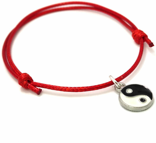 Piros zsinórszövet karkötő jin-jang charmmal. Paraméterek:. Charm mérete kb. 1,5 cm. Charm anyaga fémötvözet. Karkötő anyaga textil.