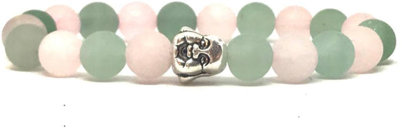 Egyedi ásvány karkötő Buddha fej köztes dísszel A 8mm-e Rózsakvarc és Aventurin ásvány golyókból készült egyedi ásvány karkötő speciális gumis damilra van fűzve, dagi buddha köztes díszítéssel. Amit a Rózsakvarc ásványról tudni kell: A festetlen rózsakvarc az egész világos, szinte áttetszőtől, a ködös középrózsaszínig terjed. Az egyik legnépszerűbb kövek
