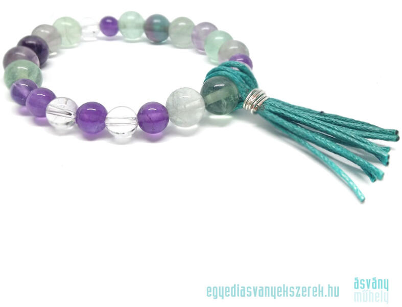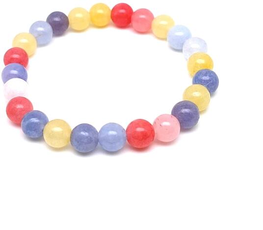 Igazi nyári hangulatot idéz ez a színes hegyikristály és jáde exkluzív ásvány karkötő, nem lehet betelni a csillogó fagyi színekkel, mindenképpen szerezd be a nyárra vagy ajándékozz vidámságot valakinek, akit szeretsz. Figyelem! A képen exkluzív kivitelű, rugalmas karkötő látható kapocs nélkül, de kérheted extra erős acélsodronyra is delfinkapoccsal és 5 cm hosszabb
