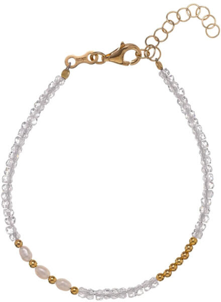 14K sárga arany karkötő ferdén összekapcsolt, ovális szemekből álló, fényes láncból tevődik össze, amelynek a közepén egy lapos medál található. A medál egy fényes, lapos masnit ábrázol, amelyet két összekapcsolt könnycsepp alkot, kivágásokkal díszítve. A karkötő állítható hosszal és kerekkapcsos zárszerkezettel rendelkezik . Medál méretei: 18 x 5 mmLánc sz