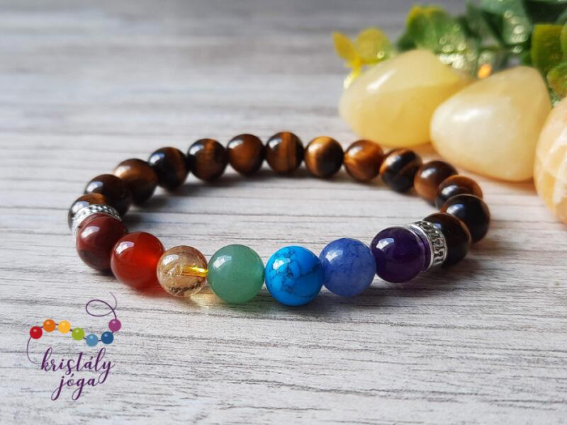 A csakrákat úgy lehet elképzelni mint energia örvényeket, minden csakrához tartozik egy szín, és több ásvány. Ha ezek a csakrák jól működnek akkor a test is egészséges, ehhez adnak segítséget ezek a kövek. Ha egyenként rákeresünk ezekre az ásványokra, láthatjuk, hogy az egész szervrendszert felölelik. A tigrisszem pedig védelmez minket. A csakra karkötő kitűnő vál