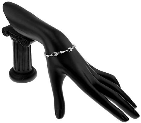 Ezüstből készült fényes karlánc szív és ovális alakú láncszemekből. Az egyszerű ovális szemeket három csatolt szív váltja fel, melyeknek a közepén egy vékony kivágás díszeleg. A karlánc hossza: 193 mm (+/- 5%)A szívek mérete: 7 x 7 mmA karkötő súlya: 2,84 gFémjelzéssel ellátott.