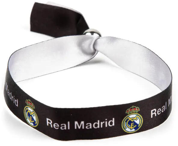 A futballrajongóknak készült Real Madrid szövött karkötővel tökéletesen kifejezheted a csapat iránti elkötelezettségedet. A fekete színben pompázó, 30 x 1,5 cm méretű, állítható méretű karkötőn a híres Real Madrid logó és felirat látható, melyet minden Madridista büszkén viselhet. A karkötő szövött anyagú, mely tartós és kényelmes viseletet biztosít. Az ered