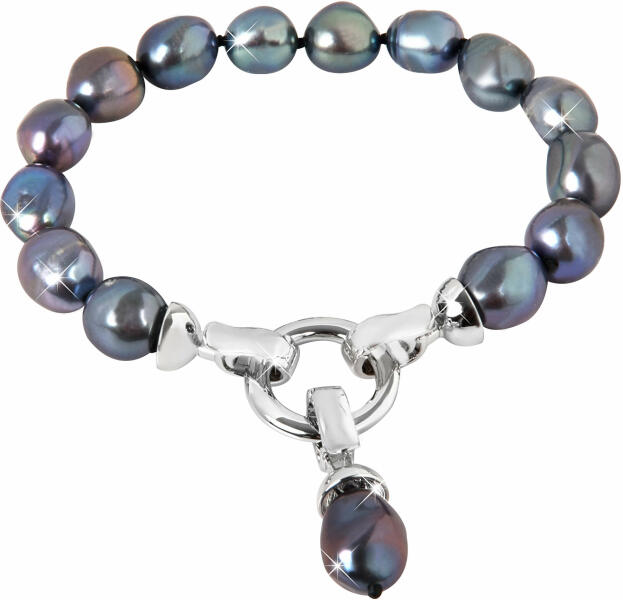 A karkötő alapján egy fényes lánc képezi, enyhén hajlított láncszemekből, amelyek egymásba kapcsolónak. A láncon két féle medál függ - virág körvonal ezüst színben és fehér gyöngyök, sötétlila hullámokkal díszítve. Zárszerkezete delfinkapcsos. Szélesség: 6,5 mmHossz: 230 mm (+/- 5%)Legnagyobb méretű medál: 15 x 19 mm