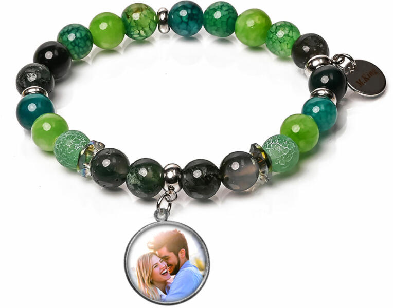 Figyelem! A képen kapocs nélkül látható a karkötő, de ezt a típust csak kapoccsal, 5 cm-es hosszabbítólánccal, erős acélsodronyra fűzve gyártjuk. Ilyen saját fényképes ásvány karkötőd csak neked lesz, máshol nem rendelhető. Ajándéknak is megfelelő, mivel a saját fotóval személyessé teheted. A legszebb üzenet a megajándékozott családtagnak vagy barátnak. Ha magad