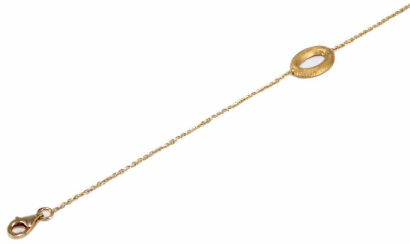 Modern stílusú, kedvelt fazonú, anker lánccal kombinált, ovális mattított betéttel díszített arany karkötő.