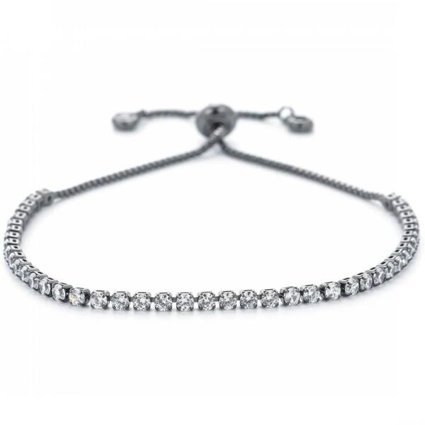 Gracie Karkötő Modern, nőiesen finom Gracie karkötő verhetetlen áron. Cirkónia ékkövekkel díszített. Az ékszer nem tartalmaz nikkelt, ezért érzékeny bőrű emberek is viselhetik. A karkötő mérete húzással állítható. Tulajdonságok: A karkötő hossza: max. 25cm A karkötő szélessége: 0,2cm Szín: Fekete/Kristály Anyaga: Nemesacél