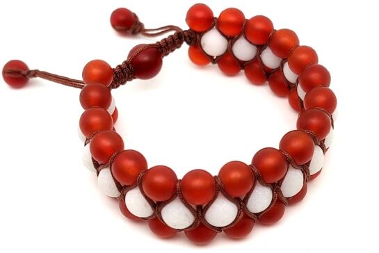 Karneol jáde karkötő (golyó hőkezelt matt fehér 3 soros Kína Karkötő ásvány) Egyedi ásvány ékszer