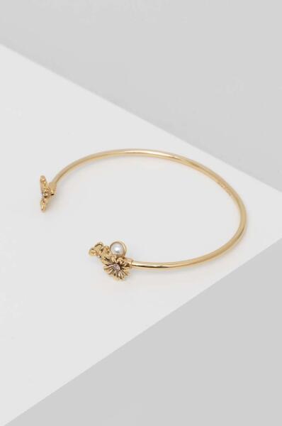 Modern stílusú, ródiummal és csavart mintával díszített, üreges, de masszív kialakítású arany karkötő.
