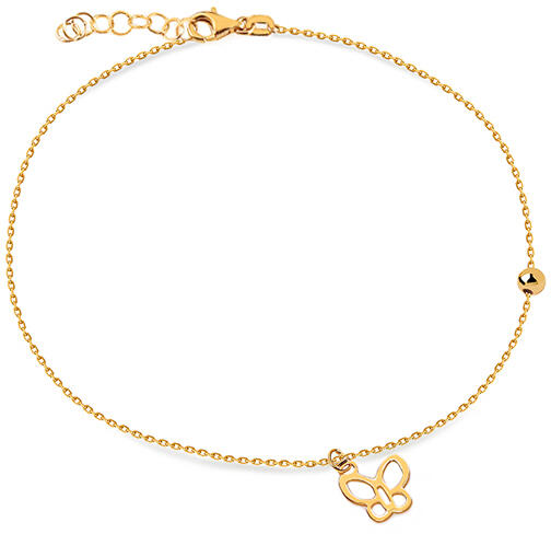 A lágyság és a sárga arany meleg tónusainak kombinációja tökéletesen kiemelkedik ezen az ékszeren. A lábon lévő hírességet egy tömör Anker mintás lánc alkotja, amelyet egy csokornyakkendő formájú dísz díszít, kiegészítve egy aranygolyóval. Biztonságos karabineres rögzítést használnak.