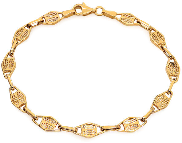 Mutatós, szögletes szemekből álló, mattítással és ródiummal díszített stiftelt karkötő.