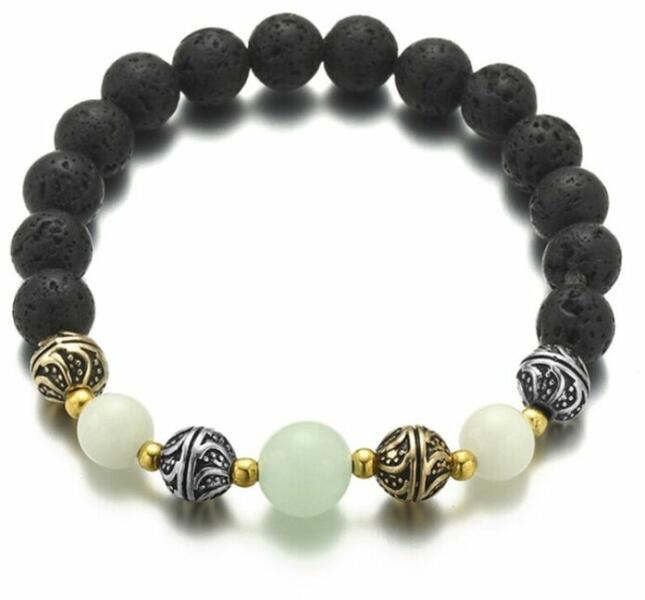 Természetes lávakő karkötő fémdíszekkel, sötétben zölden világító gyöngyökkel. Hossza: 19 cm, rugalmas. Egy jól megválasztott ékszer öltöztet, feldobja a napodat, valahányszor ránézel, jobb kedvre derülsz. A színekkel és anyagokkal manapság könnyű variálni a különböző stílusokat, nem kell ragaszkodni a hagyományos szettekhez, nem feltétlenül kell a fülbevaló