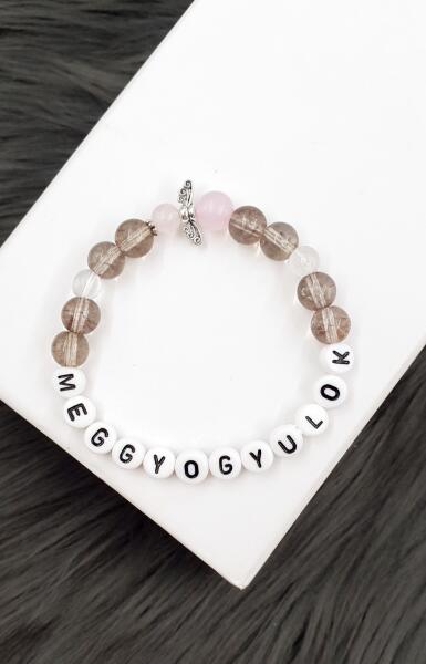 Meggyógyulok feliratos füstkvarc ásványkarkötő, rózsakvarc angyalkával. A felirat más is lehet, egyedileg rendelhető hozzá, a vásárlás végén a megjegyzés rovatban add meg nekünk!