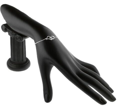 A karlánc 925 ezüstből készült. A két rövidebb láncot két összekapcsolt szabálytalan szívkörvonal díszíti. A lánc állítható hosszúságú, delfinkapoccsal záródik. A szívek mérete: 9 x 15 mmA karkötő hossza: 160 - 190 mm (+/- 5%)A karkötő súlya: 1,64 gFémjelzéssel ellátott.