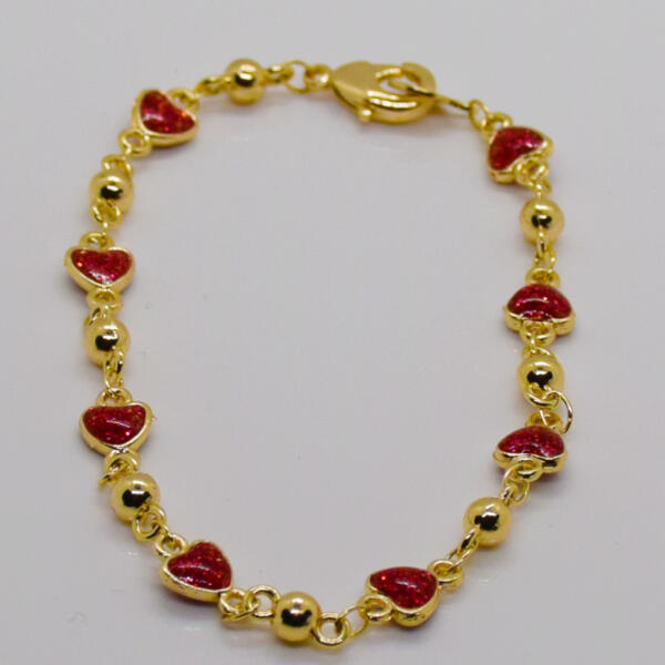 Női Arany Színű Piros Szivecskés Karkötő 18.5CM / 5MM - Tökéletes kiegészítő minden alkalomra. Minőségi anyagokból készült, elegáns megjelenést biztosítva. Női Arany Színű Piros Szivecskés Karkötő 18.5CM / 5MM egy igazi mestermű, amely ötvözi a klasszikus dizájnt a modern stílussal. Kiválóan alkalmas mindennapi viseletre vagy különleges alkalmakra, ez a termék ne