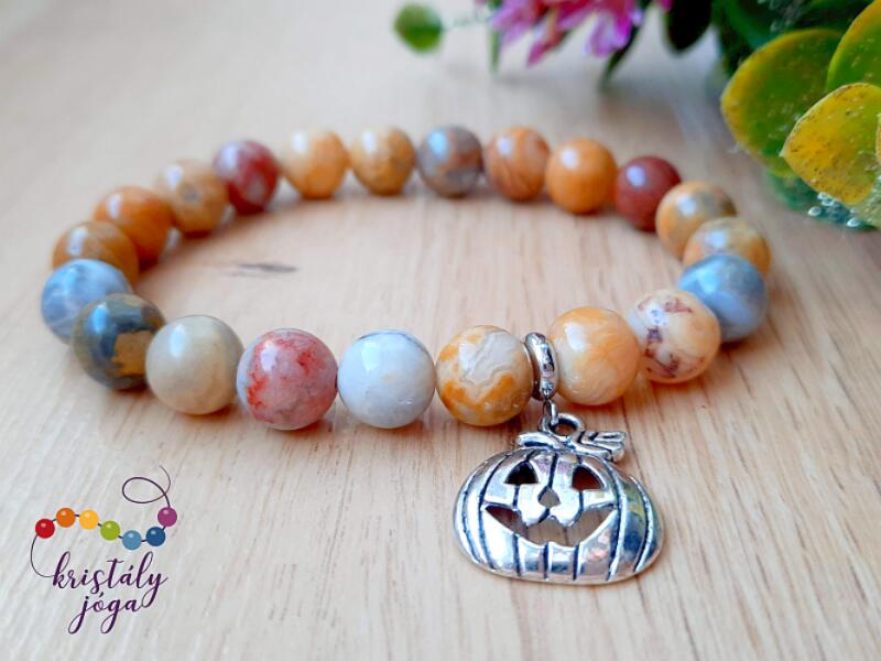 Figyelem! A képen exkluzív kivitelű, rugalmas karkötő látható kapocs nélkül, de kérheted extra erős acélsodronyra is delfinkapoccsal és 5 cm hosszabbítólánccal. Ha a kapcsos verziót kéred, ami nem szakad, nem nyúlik, válaszd ki a listából, vagy írd be a Megjegyzésbe, és a csuklód körbemért méretét is add meg. A karkötőt alapesetben a képen is látható charmmal kü