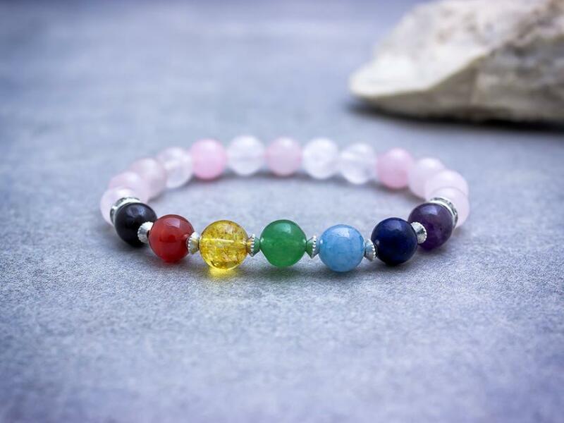 A 8 mm-es ásvány gyöngyök gumira vannak felfűzve. Csakra karkötő ásványai: rózsakvarc, lápisz, akvamarin, citrin, karneol, gránát, tigrisszem, ónix. A csakra karkötő segít, hogy a mindennapi stresszt és zaklatottságot nyugalommá és higgadtsággá alakítsuk át. Tisztítja a tudatot, ellazulást, de ugyanakkor éberséget biztosít számunkra. Figyelem! Az ásványokat, krist