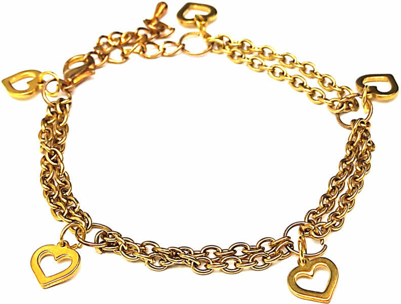 Szív charmos karkötő, 5 charmmal. Paramé terek: Charm mérete 1 cm. Anyaga nemesacél, karkötő anyaga rozsdamentes acél. Karkötő mérete 17+5 cm. (Ha ettől eltérő méretet szeretnél, rendeléskor a MEGJEGYZÉSBE írd be. )