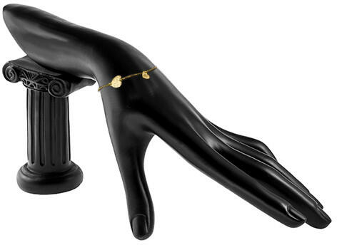 Az 585 sárga arany karkötőt két lapos, nem mozgatható medál díszíti, amelyeken a "Love" és a "Me" - "Szeress engem" - felirat látható. A szíveket nem lehet levenni a láncról. A láncot ovális láncszemek alkotják, amelyek egymásra merőlegesen vannak összekapcsolva. A karkötő hossza állítható és rugós karika kapoccsal rendelkezik. A szív mérete: 9 x 9 mmA lánc széless
