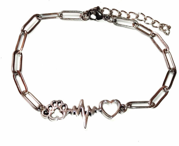 Tappancs -szív charmos karkötő, 1 charmmal. Paramé terek: Charm mérete 3,4x1,2 cm. Anyaga fémötvözet, karkötő anyaga rozsdamentes acél. Karkötő mérete 17+5 cm. (Ha ettől eltérő méretet szeretnél, rendeléskor a MEGJEGYZÉSBE írd be. )