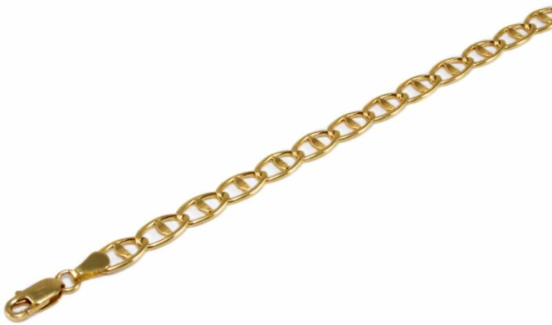 Kedvelt fazonú, pálcás betétekkel kombinált, üreges, de masszív kialakítású pancer szemkötésű arany karkötő.