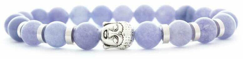 8 mm-es akvamarin ásvány gyöngyökből speciális gumira fűzött ezüst színű Buddha fejjel díszített karkötő. Amit az akvamarinról érdemes tudnod: Az akvamarin egy szinte világítóan csillogó kő, melynek a neve az olasz "tengervíz" szóból származik, megtestesítendő a tenger nagyszerűségét. A kő a berill család talán legnemesebb tagja, a zöld emerald "nővére". Színe