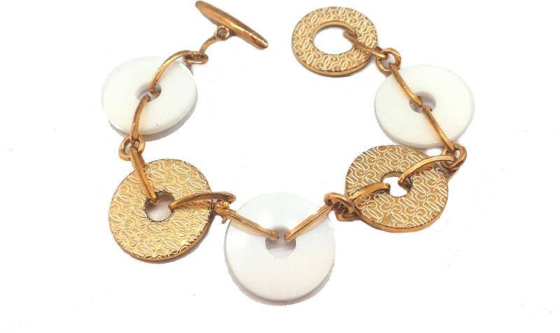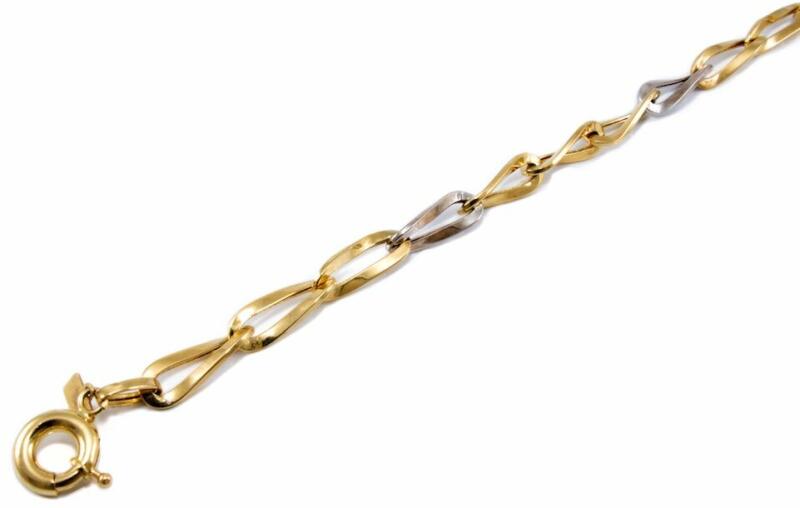 Klasszikus és kedvelt fazonú, üreges szemekből készült, de masszív, ródiummal díszített, pancer típusú arany karkötő.