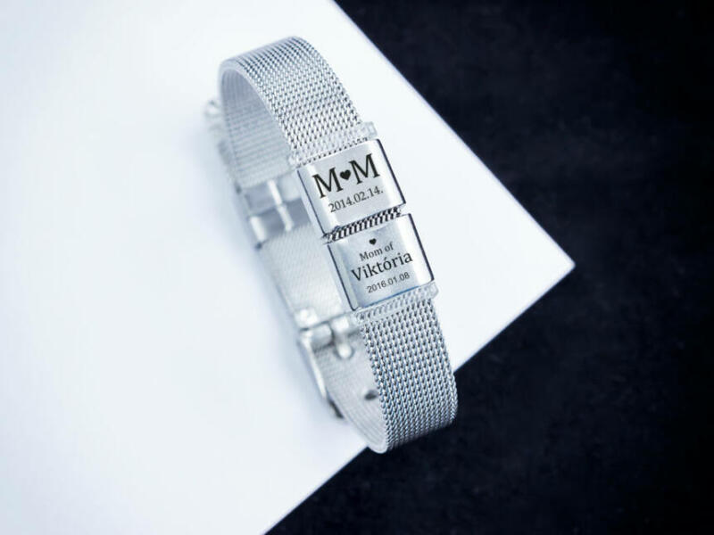Emlékőrző ékszerben a Te varázslatod! Az egyik medálra gyermeked keresztnevét, és születési dátumukat gravírozzuk! A gyermek neve, és dátuma mellett "Mom of" felirat is helyt kap a medálon. A másik medálra a keresztnevetek kezdőbetűjét, és egy számotokra fontos dátumot gravírozunk! (Lézer gravírozott szögletes alakú nemesacél csúszó medálok - 12×10 mm méretű) Az