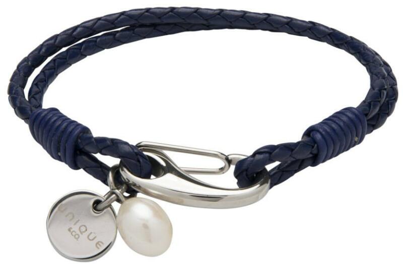 Rozsdamentes acél és bőr karkötő. Természetes bőr és rozsdamentes acél. Sötétkék szín. Különleges díszek a karkötőn: természetes gyöngy és medál Biztonsági zár. 19 cm-es méretben. Cikkszám : B436VI Szín : Sötétkék Karkötő anyaga : Rozsdamentes acél és bőr Méretválaszték : 19 cm Nikkelmentes : Igen Vízállóság : nem vízálló Garancia : A termékre egy év