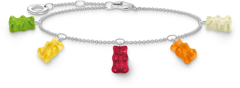Újrahasznosított ezüstből készült karkötő 5 db HARIBO aranymackóval zöld, sárga, piros, narancssárga és fehér színben