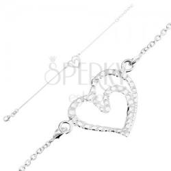 Karkötő 925 ezüstből sűrűn összekapcsolt ovális szemekből álló láncból, amely mindkét oldalról a medálhoz van erősítve. A medál aszimmetrikus szív alakú és elülről fényes golyókkal díszített a belsejében pedig egy hullámos vonal húzódik. A karkötő hossza állítható és delfinkapoccsal záródik. A medál méretei: 15 x 14 mmA lánc szélessége: 1 mmA karkötő