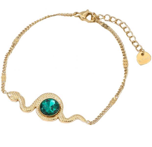 Sierra Karkötő Elegáns Sierra karkötő verhetetlen áron. Az ékszer akár minden nap, hétköznapokon is viselhető. Színes cirkónia ékkövel díszített. Nem tartalmaz sem nikkelt, sem ólmot, sem kadmiumot. Tulajdonságok: A karkötő hossza: 17cm + 3cm A díszítés mérete: 3,5cm + 1,3cm Anyaga: Nemesacél Szín: Arany/Zöld