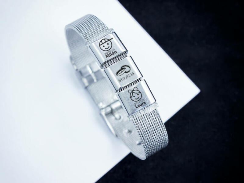 Emlékőrző ékszerben a Te varázslatod! Két medálra 2 gyermeked keresztnevét, és születési dátumát gravírozzuk! A harmadik medálra a házasságkötésetek dátumát gravírozzuk! (Lézer gravírozott szögletes alakú nemesacél csúszó medálok - 12×10 mm méretű) Az ár tartalmazza a gravírozás költségét. A gravírozási idő rendeléstől számított 2 hét , de erről kül
