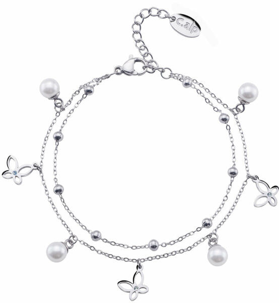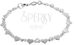 A finom karkötő 925 ezüstből készült, kis láncszemekkel összekapcsolt ellapított szívecskékből van összeállítva. Delfinkapoccsal záródik. Szélesség: 6 mmA karkötő hossza: 200 mmA karkötő súlya: 5,7 gFémjelzéssel ellátott.