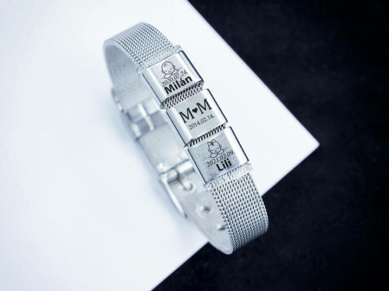 Emlékőrző ékszerben a Te varázslatod! Két medálra 2 gyermeked keresztnevét, és születési dátumát gravírozzuk! A harmadik medálra a keresztnevetek kezdőbetűjét, és egy számotokra fontos dátumot gravírozunk! (Lézer gravírozott szögletes alakú nemesacél csúszó medálok - 12×10 mm méretű) Az ár tartalmazza a gravírozás költségét. A gravírozási idő rendeléstől