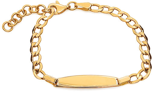 A karkötő sárga aranyból készült, téglalap alakú lemezzel kiegészített Pancier mintás láncból áll. A karkötő gyermekek számára alkalmas.