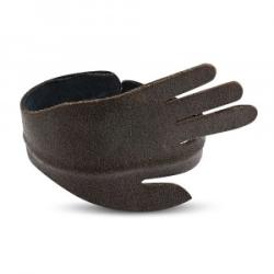 Sötétbarna színű bőr karkötő érdes felülettel. A mutatóujj a többi ujjhoz képest sokkal hosszabb, ez öleli át a csuklót. A karkötő belsejében drót húzódik, így bármilyen méretre beállítható. A pánt belső oldala fekete. A karkötő hossza: 203 mmA karkötő legszélesebb része: 70 mmAz ár egy darabra vonatkozik.