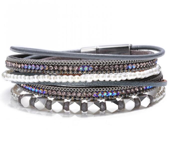 Gwen Karkötő Csodaszép Gwen karkötő verhetetlen áron. A karkötő mágneses zárral zárható, kétszer a csukló köré tekerhető. Az ékszer nem tartalmaz nikkelt, ezért érzékeny bőrű emberek is viselhetik. Tulajdonságok: A karkötő hossza: 38cm A karkötő szélessége: 1,5cm Anyaga: Műbőr Szín: Szürke