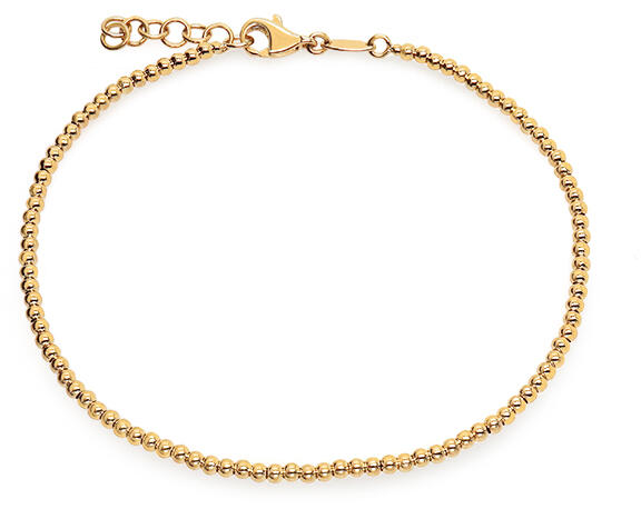 A varázslatos karkötőt magas fényű aranygolyók díszítik. Rögzítése biztonságos karabinerből áll.
