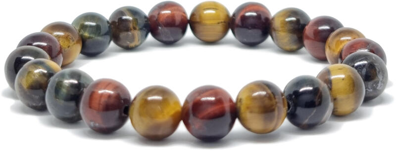 Kiváló minőségű valódi multi ásványból készült natúr ásvány karkötő. A multi ásvány karkötő, amely tigrisszem, macskaszem és sólyomszem egyedi kombinációját tartalmazza, vibráló fényjátékával és textúrájával figyelemfelkeltő kiegészítőt kínál, miközben a bátorság, a tisztánlátás és a stabilitás szimbólumaként is viselhető. A karkötő 8-9 mm ásv