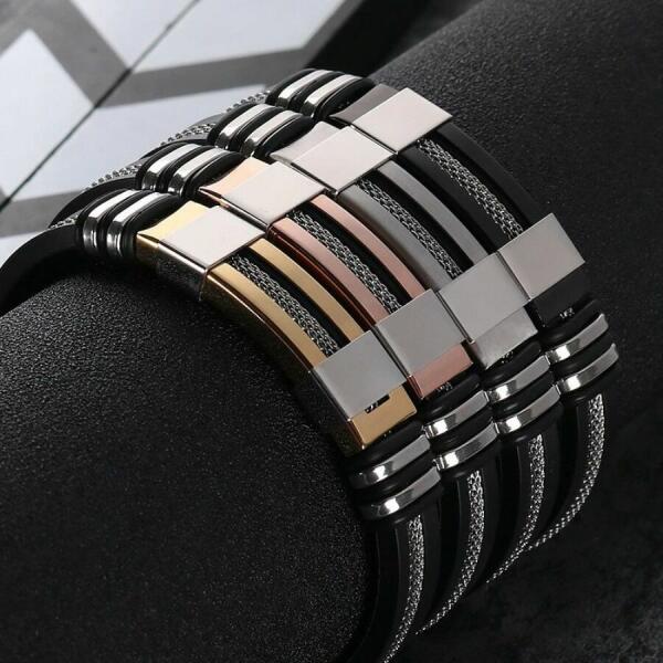 Nemesacél és szilikon karkötő férfiaknak. Hangsúlyos, látványos, vagány darab. Nem feketedik, nem rozsdásodik. Hossza kb. 21,5 cm. Nem korrodálódik, illetve nem kopik, ezáltal hosszú ideig megőrzi szépségét. Az ezüsttel ellentétben nem feketedik. Mi a nemesacél? Mindazokat az acélfajtákat nevezik nemesacélnak, amelyeket különleges eljárással olvasztottak, magas tisztas