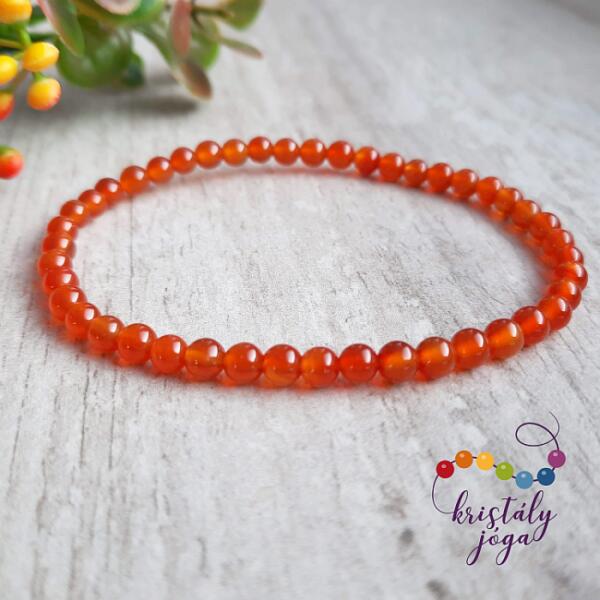 Ha karneollal meditálunk, segít eltávolítani a gondolatokat. Leküzdi az erőszakot, önbizalomra tanít, kitartást és bátorságot ad. Megtisztít, és új energiával tölt fel más köveket. A karneol javítja a vérképet, oldja a vérrögöket és a véraláfutásokat, segít elállítani a vérzést, gyorsítja a sebek gyógyulását, hatásos vérmérgezés esetén is. Szabályozza a