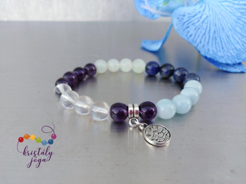 Szodalit ásvány golyókból fűzött gumis karkötő. Amit a szodalitról érdemes tudnod: A szodalit küllemét illetően vetekszik a lápisz lazulittal (az ára viszont annak a tört része). Neve semmiképpen nem szépségére utal, hanem a benne található szódium mennyiségére. Lelki gyógyhatás: A szodalit a hősök köve, ha ugyanis bátorságra van szükségünk ahhoz, hogy kimerjün