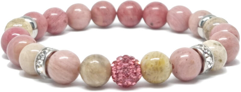 Kiváló minőségű valódi thulit ásványból készült ásvány karkötő. A thulit karkötő élénk rózsaszín színei a szeretet és az elfogadás érzését közvetítik, miközben az ásványt a pozitív energiák vonzásának és a szívnyitás szimbólumának tekintik. A karkötő valódi thulit, korall 8-9 mm ásványból és nemesacél rondella és disco gömb dísszel készült.