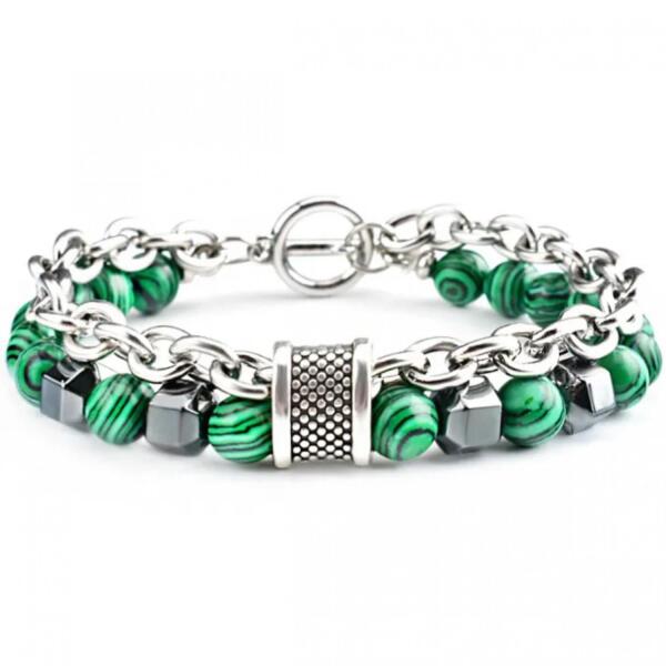 Gabor karkötő Mutatós karkötő színes gyöngyökkel és robusztus fém láncokkal, amely tökéletes kiegészítő azok számára, akik szeretik az egyedi és modern stílust. A fém részletek eleganciát adnak a karkötőnek, míg robusztus felépítése hosszú élettartamot és kényelmes viseletet garantál. Ez a karkötő ideális mindennapi viseletre és különleges alkalmakra, amikor