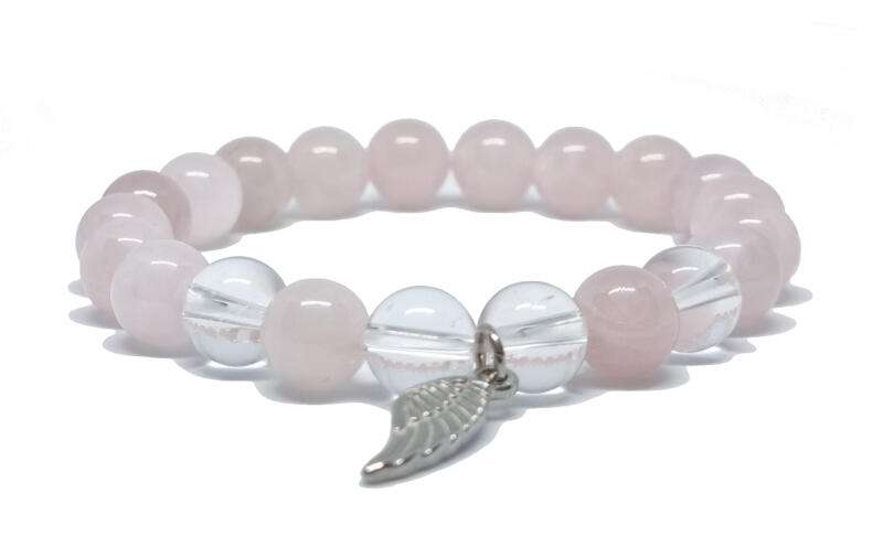 Kiváló minőségű valódi madagaszkári rózsakvarc ásványból készült ásvány karkötő. A madagaszkári rózsakvarc karkötő lágy rózsaszín árnyalatával és kifinomult formájával elegáns kiegészítő, amely a kedvességet és a harmóniát tükrözi. A karkötő valódi madagaszkári rózsakvarc, hegyikristály, 8-9 mm ásványból és nemesacél angyal szárny logó dísszel k