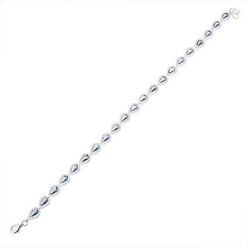925 ezüst ródiummal kezelt karkötő, amely könnycsepp alakúra csiszolt összekapcsolt sötétkék cirkóniából áll. Mindegyik könnycsepp áttetsző cirkóniával van körbevéve. A karkötő delfinkapoccsal viselhető. Karkötő szélessége: 5 mmKarkötő hossza: 180 mmHosszabbítható rész: 40 mmTeljes hossz: 220 mm (+/- 5%)Karkötő súlya: 7,81 gFémjelzéssel ellátott. A ródiummal