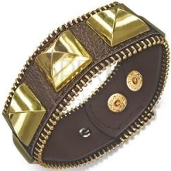 A barna bőrből készült szélesebb karkötőt legömbölyített élű arany színű piramisok díszítik. A karkötő szélén cipzár díszítés található. A karkötő mérete állítható. Hosszúság: 230 mmSzélesség: 34 mm
