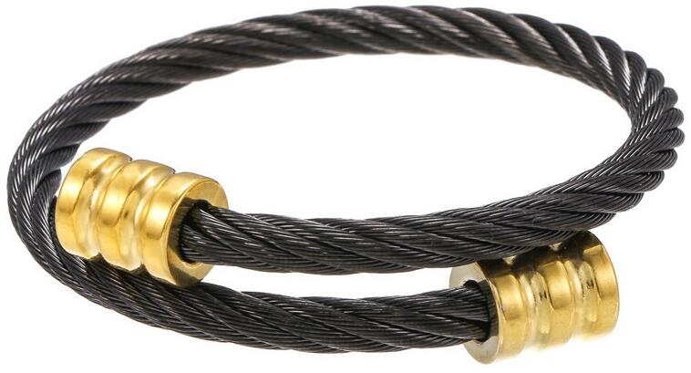 Lord Karkötő Modern Lord karkötő uraknak verhetetlen áron. Az ékszer nem tartalmaz nikkelt, ezért érzékeny bőrű emberek is viselhetik. A karkötőt szét kell húzni, hogy a csuklóra lehessen tenni. A végein lévő díszek mágnesesek. Tulajdonságok: A karkötő max. mérete: 22cm Szín: Fekete/Arany Anyaga: Nemesacél